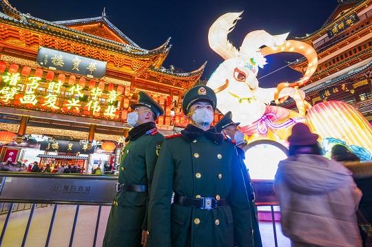 2月5日元宵佳節(jié),上海豫園張燈結(jié)彩、美輪美奐,一年一度的國(guó)家級(jí)非物質(zhì)文化遺產(chǎn)項(xiàng)目上海豫園新春民俗藝術(shù)燈會(huì)在此舉辦。節(jié)日恰逢周末,賞燈游園人群摩肩接踵?;粝?,武警上??傟?duì)機(jī)動(dòng)第一支隊(duì)官兵堅(jiān)守崗位,默默守護(hù)群眾平安賞燈。