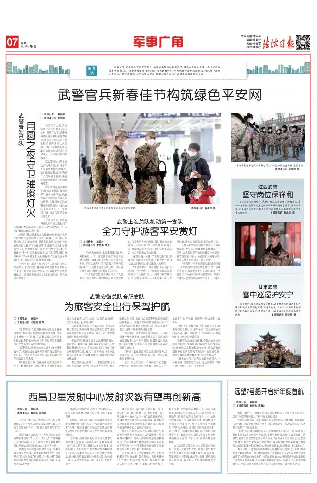 “看著窗外的燈火和匆匆回家的行人,一種使命感、自豪感油然而生。春運(yùn)我在崗,守護(hù)萬(wàn)家燈火明?!倍?jí)上士楊帆說。