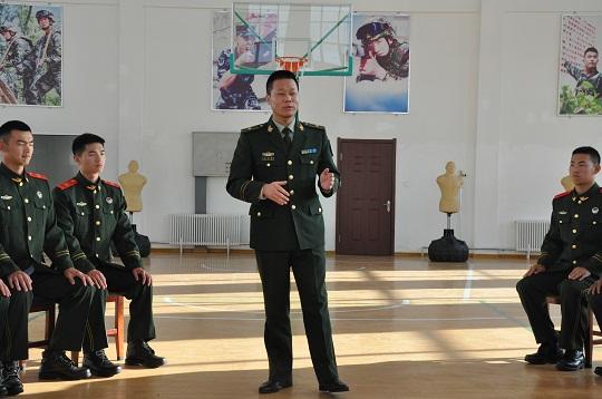 圖為武警部隊(duì)理論服務(wù)分隊(duì)成員、江蘇海警局執(zhí)法部偵察科科長王志國為武警吉林總隊(duì)白山支隊(duì)官兵宣講理論知識(shí)。徐笠桓 攝