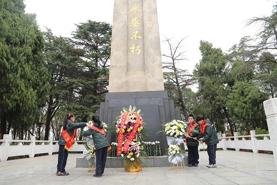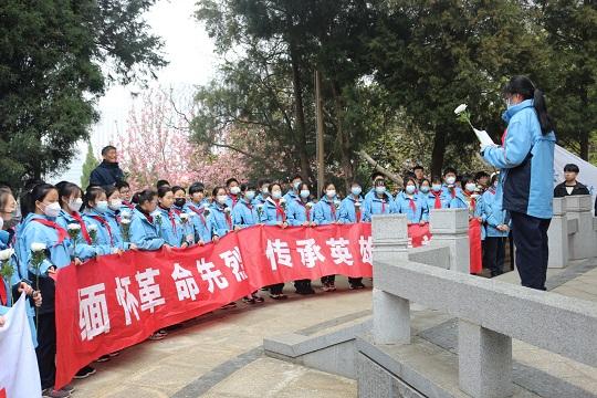 圖為3月31日,南京上元中學學生徒步近3公里祭掃鄧仲銘烈士碑。陳遠根 攝