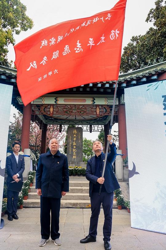 4月3日,在江蘇省南京市江北新區(qū)組織的清明祭英烈活動中,楊太平烈士生前所在連老連長何恩會,為江北新區(qū)長蘆街道六甲社區(qū)“楊太平志愿服務隊”授旗。
