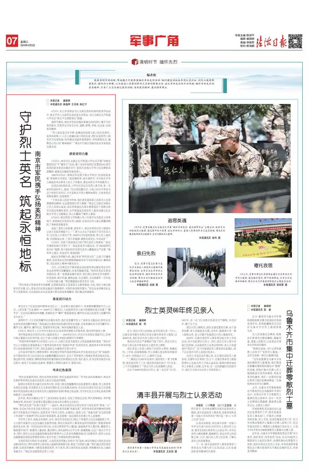 清明節(jié)期間,南京市軍民在緬懷祭奠先烈的同時,攜手守護英烈地名,用英烈名字命名鄉(xiāng)村、道路、橋梁、亭閣、紀念地,弘揚英烈精神。