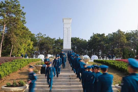 圖為官兵瞻仰烈士紀(jì)念碑。