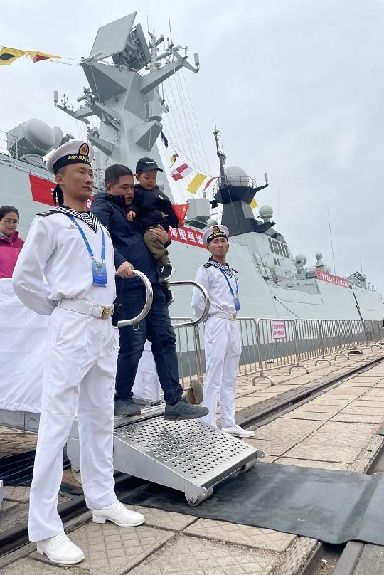 4月22日的青島港3號碼頭,前來參加“2023年海軍成立紀(jì)念日艦艇開放活動(dòng)”的市民絡(luò)繹不絕。艦艇懸掛滿旗,以海軍最高禮儀迎接人民海軍成立74周年這個(gè)重要的日子。