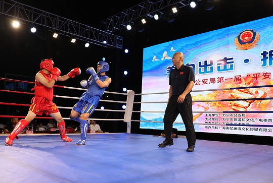 5月19日,海南省萬(wàn)寧市公安局首屆“平安萬(wàn)寧杯”散打擂臺(tái)賽在市公安局戰(zhàn)訓(xùn)基地正式拉開(kāi)帷幕。萬(wàn)寧市公安局黨委利用競(jìng)技活動(dòng)培塑實(shí)戰(zhàn)練兵的濃厚氛圍,豐富警營(yíng)文化生活,強(qiáng)力推進(jìn)能力提升建設(shè)背景下公安隊(duì)伍“練為戰(zhàn) 戰(zhàn)為安”的全警大練兵需求。