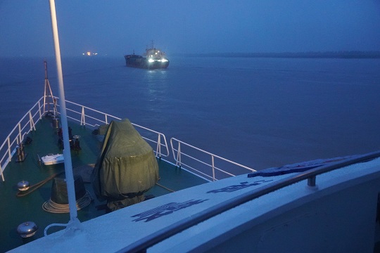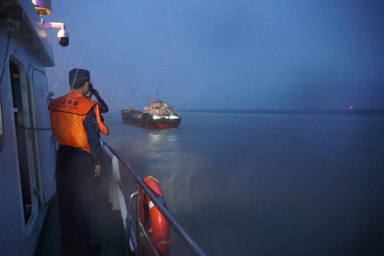 6月18日8時(shí),上海海警局執(zhí)法艇在長江口南槽航道附近海域巡邏時(shí),發(fā)現(xiàn)一艘貨船使用的是篡改后的AIS,屬于“套牌船”。執(zhí)法艇靠前對其進(jìn)行喊話示警,并登臨檢查該船。經(jīng)查,該船共有6名船員,裝載牛肚等凍品約200噸,案值約2000萬元。