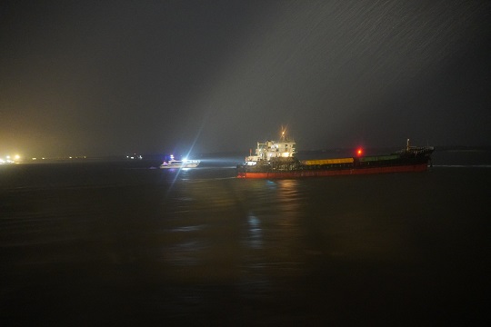 6月17日17時(shí),上海海警局獲悉在長江口海域存在涉嫌走私活動,在上海海事、農(nóng)委等部門協(xié)助下,該局成功鎖定目標(biāo)船并立刻派遣奉賢海警局執(zhí)法艇前往其所在海域。22時(shí)許,執(zhí)法艇到達(dá)目標(biāo)海域后,一艘船只立刻改變航向。執(zhí)法艇迅速靠前并對其喊話表明身份,要求停船接受檢查。該船拒不停船,加速逃竄。執(zhí)法艇加速追上,于23時(shí)許成功登臨控制該船。經(jīng)檢查,該船共有6名船員,裝有12個(gè)集裝箱,裝載豬耳朵等凍品約400噸,案值約2000萬元。