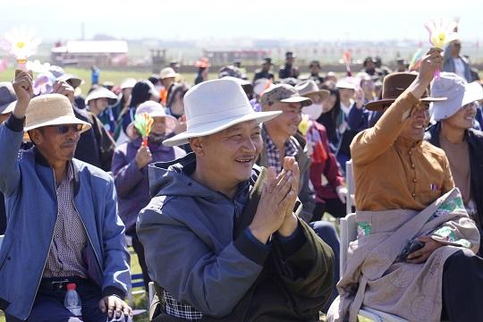 “唱支山歌給黨聽,我把黨來比母親……”一曲《唱支山歌給黨聽》拉開文藝演出序幕。歌曲終了,甘河子鄉(xiāng)副鄉(xiāng)長拉本加感慨地說:“好日子都是共產(chǎn)黨給的,黨的恩情我們不能忘?!?/p>
