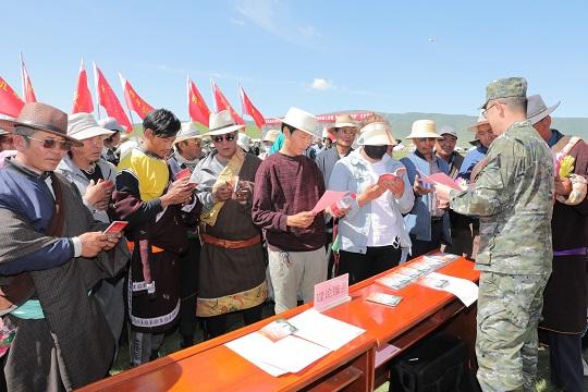 之后,官兵在現(xiàn)場開展了民族宗教政策宣講、醫(yī)療巡診、法律咨詢等活動,為農(nóng)牧民提供實用的綜合服務(wù)。部分官兵還和群眾圍坐在草地上,圍繞國防建設(shè)、增收致富、生態(tài)環(huán)保、雙擁共建等話題聊熱點、談心得、話感悟?!爸灰h和國家的好政策走,咱們的家園一定越來越美麗,咱們的日子一定越過越紅火?!蔽渚嗪?傟牶1敝ш犝挝瘑T葉華說。