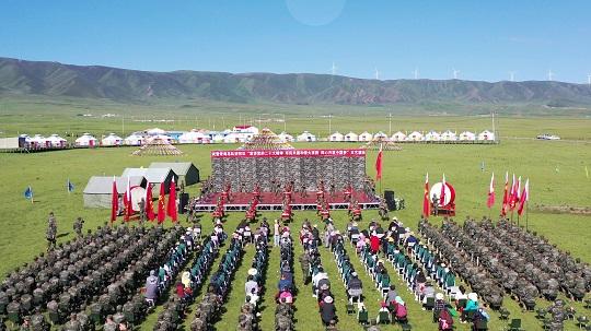 7月17日,在草原最美的季節(jié),武警青海總隊“宣講黨的二十大精神,軍民共建和諧大家園,同心共筑中國夢”文藝演出走進青海省海北藏族自治州,當?shù)啬撩袢罕姾筒糠竹v訓(xùn)官兵歡聚一堂。