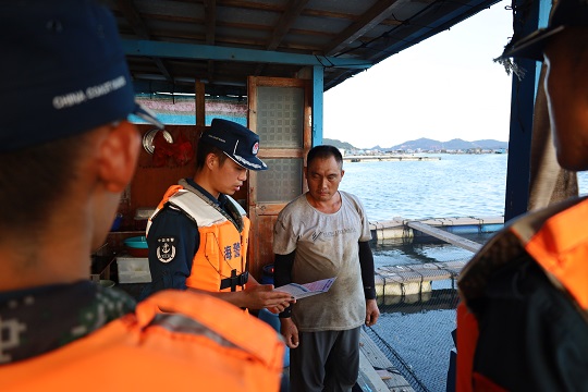 在做好海警營區(qū)和執(zhí)法艦艇防臺工作的基礎(chǔ)上,該局執(zhí)法員深入轄區(qū)碼頭開展安全檢查,幫助漁船民對漁排、船只加固纜繩、整理網(wǎng)具,檢查防臺防汛措施,消除各類安全隱患。巡邏艇同步出海巡查,通過廣播喊話、發(fā)放宣傳冊等方式進(jìn)行防臺宣傳,緊急勸返轄區(qū)漁民群眾撤離到陸地。