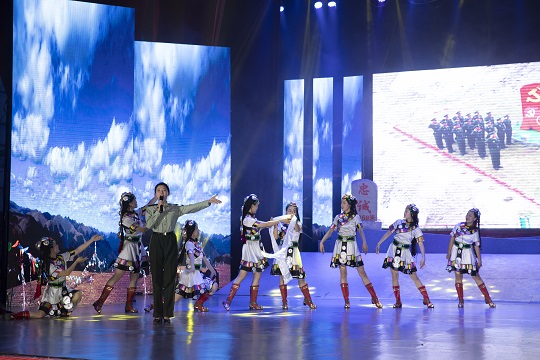本次活動由武警青??傟犖乃囕p騎兵、青海省演藝集團(tuán)、海西歌舞團(tuán)等進(jìn)行表演。文藝演出在雄壯震撼的歌舞《向著偉大的夢想》中拉開帷幕,情景表演唱《祖國召喚,我喊到》、舞蹈《追風(fēng)》《我的鐵甲夢》、紅歌聯(lián)唱《十送紅軍》《英雄贊歌》《不忘初心》、音樂快板《強(qiáng)軍征程新風(fēng)貌》、馬頭琴演奏《草原歡歌》、川劇《變臉》等節(jié)目輪番上演。
