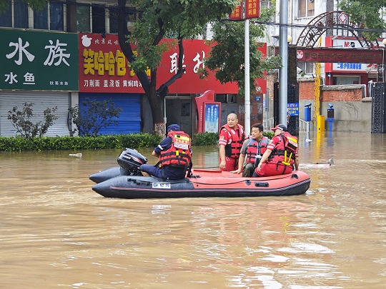 8月1日,涿州市人民武裝部接到群眾求救電話,西壇村一家九口全部被困家中,有蹣跚學(xué)步的孩童,有84歲高齡的老人,還有癱瘓?jiān)诖驳牟∪恕V旌陿I(yè)立即指派保障科長(zhǎng)馬再長(zhǎng)帶領(lǐng)一艘橡皮艇奔赴現(xiàn)場(chǎng)察看情況。天色漸晚,水面霧氣升騰,被困群眾家房屋進(jìn)出路口窄小,水流交匯、水勢(shì)湍急,救援難度極大。