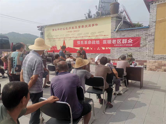 8月9日一早,河北省軍區(qū)石家莊第三干休所醫(yī)療服務(wù)隊(duì)攜帶血壓計(jì)、心電圖機(jī)、血糖檢測(cè)儀等醫(yī)療設(shè)備驅(qū)車一百多公里,來(lái)到太行山深處的革命老區(qū)——河北省贊皇縣黃北坪村,為剛剛受到暴雨山洪侵襲的村民進(jìn)行健康體檢、常見(jiàn)病篩查及災(zāi)后防疫宣講。