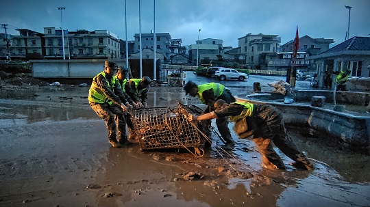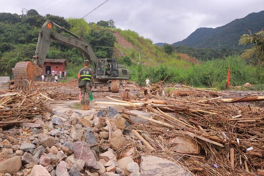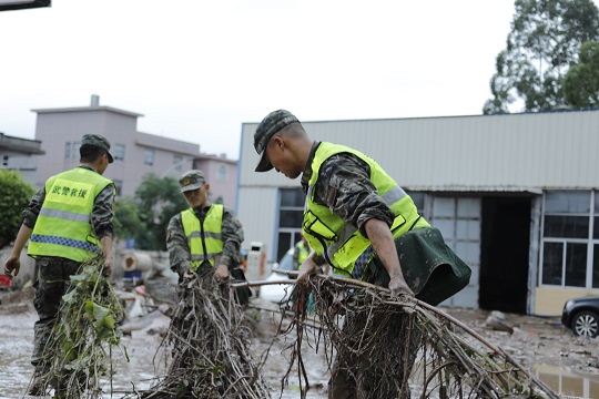 臺(tái)風(fēng)登陸后,福清市鏡洋鎮(zhèn)遭遇強(qiáng)降雨襲擊,發(fā)生洪澇災(zāi)害。接福清市人民政府函請(qǐng),武警第二機(jī)動(dòng)總隊(duì)某支隊(duì)于9月5日14時(shí)40分出動(dòng)63名官兵,攜帶15臺(tái)(套)專業(yè)救援機(jī)械趕赴受災(zāi)一線,協(xié)助地方政府進(jìn)行道路清障和供電搶修任務(wù)。