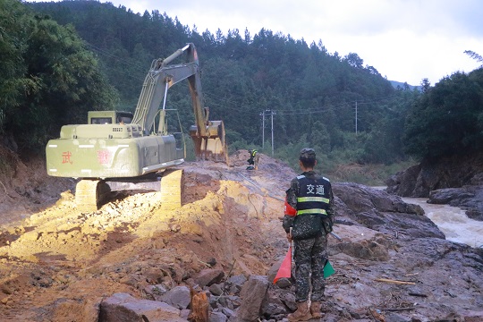 9月5日凌晨,福州市永泰縣葛嶺鎮(zhèn)連續(xù)強(qiáng)降雨,引發(fā)山體滑坡,造成道路中斷、交通堵塞,停水停電、群眾受困。武警第二機(jī)動(dòng)總隊(duì)某支隊(duì)緊急派出應(yīng)急救援分隊(duì),攜帶17套大型救援裝備,趕赴受災(zāi)現(xiàn)場(chǎng)。截至9月5日18時(shí),官兵共清理修筑路基50米,清理塌方體17處,約5500方土石,運(yùn)送物資100余份,同時(shí),繼續(xù)對(duì)葛嶺鎮(zhèn)街區(qū)進(jìn)行清淤,并計(jì)劃搶通另外兩條鄉(xiāng)村公路。