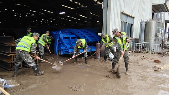經(jīng)過6個(gè)多小時(shí)連續(xù)冒雨奮戰(zhàn),截至9月5日21時(shí)20分,官兵累計(jì)清理道路3000余米,清理淤泥及垃圾1000余方,轉(zhuǎn)移受損車輛5輛,清理泄洪渠30米。