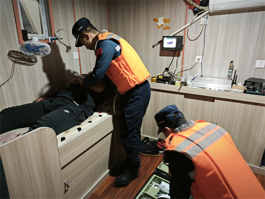 接到信息后,海警執(zhí)法艇迅速鎖定該漁船位置并前往救助,當(dāng)日19時10分成功靠幫該漁船。隨船衛(wèi)生員對病人進(jìn)行血壓檢測后,發(fā)現(xiàn)其血壓明顯超出正常值,需立即送醫(yī)救治。海警執(zhí)法員隨即將該漁民過駁至艇上進(jìn)行前期救治,同時協(xié)調(diào)救護(hù)車做好運(yùn)送病人準(zhǔn)備。