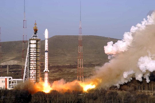 圖為2006年4月27日,長(zhǎng)征四號(hào)丙運(yùn)載火箭首飛,發(fā)射遙感衛(wèi)星一號(hào)。