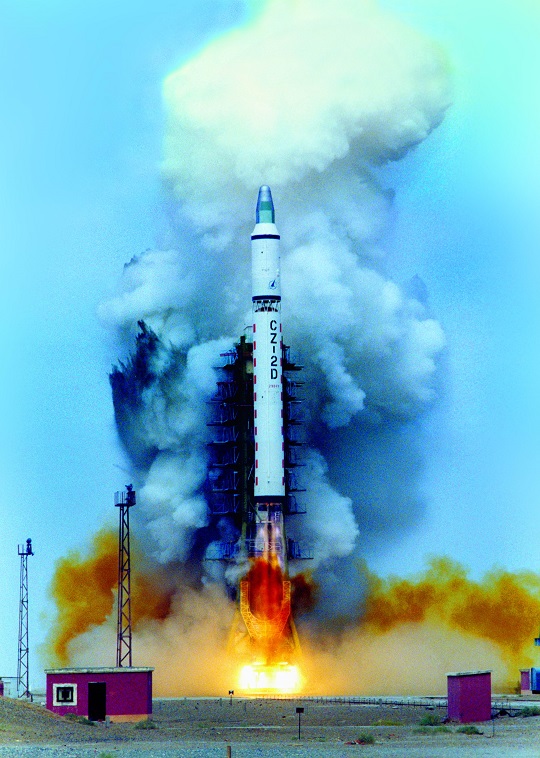 圖為1992年8月9日長(zhǎng)二丁首飛,發(fā)射返回式衛(wèi)星。