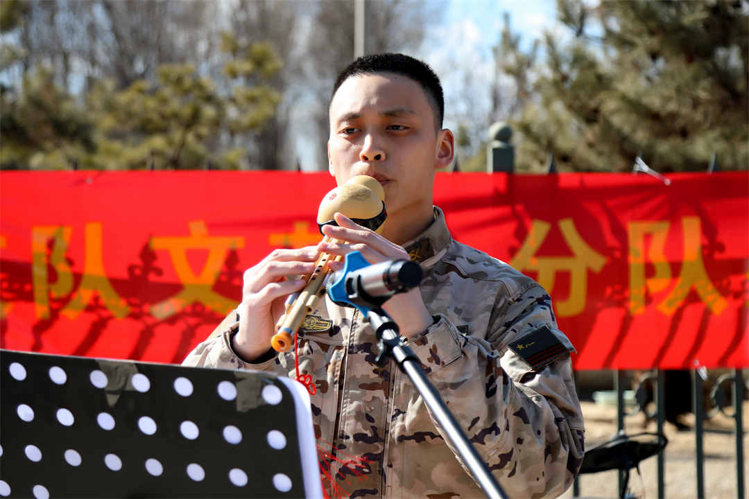 “支隊堅持‘基層至上、士兵第一’的理念,圍繞‘以文化人、以文育人’積極探索實踐,倡導向文化要戰(zhàn)斗力,不斷用新時代強軍文化滋養(yǎng)兵心、砥礪膽氣,持續(xù)煥發(fā)政治工作強大生命力。文藝小分隊隊員全部來自基層一線,既是能打敢拼的戰(zhàn)斗員,也是為兵服務的宣傳員?!痹撝ш犝喂ぷ鞑恐魅紊燮G天介紹。