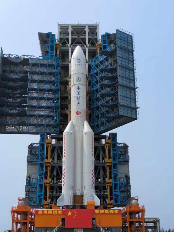 記者從國家航天局獲悉,4月27日,嫦娥六號探測器和長征五號遙八運載火箭在中國文昌航天發(fā)射場完成技術區(qū)相關工作后,器箭組合體垂直轉運至發(fā)射區(qū),計劃5月初擇機實施發(fā)射。