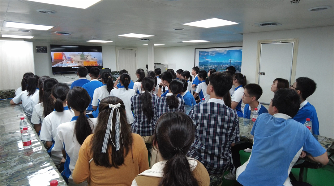之后,海警執(zhí)法員組織學(xué)生觀看“獻身使命的新時代海上執(zhí)法先鋒——汪曉龍”先進事跡匯報片。汪曉龍同志生前擔(dān)任廣東汕尾海警局執(zhí)法員,2023年3月24日在一次執(zhí)行海上查緝走私行動時壯烈犧牲,被追授中國青年五四獎?wù)隆?/p>