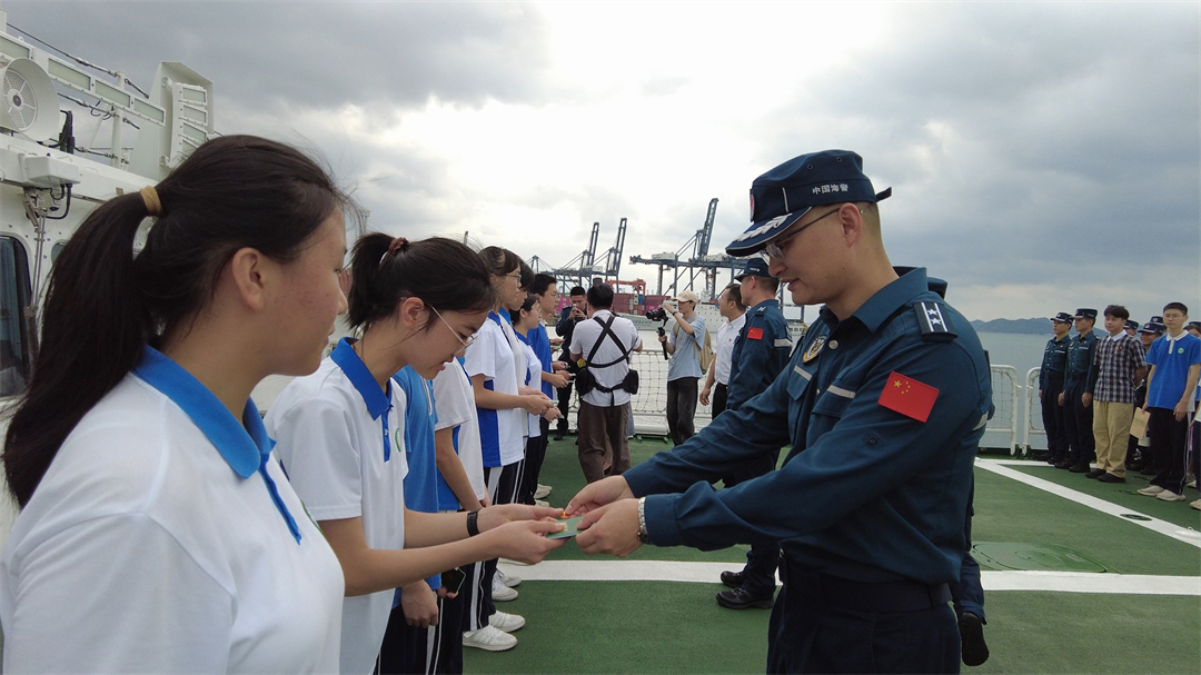 入團儀式在嘹亮的國歌聲中拉開序幕。全體人員在深圳海警局德洲艦甲板上肅立,高聲齊唱國歌。隨后,與會領(lǐng)導(dǎo)為新團員頒發(fā)團徽和團員證。全體團員面向團旗莊嚴(yán)宣誓,兩名團員代表作了慷慨激昂的發(fā)言。最后,羅湖區(qū)教育局領(lǐng)導(dǎo)致辭寄語,勉勵全體團員為中華民族偉大復(fù)興不懈奮斗。