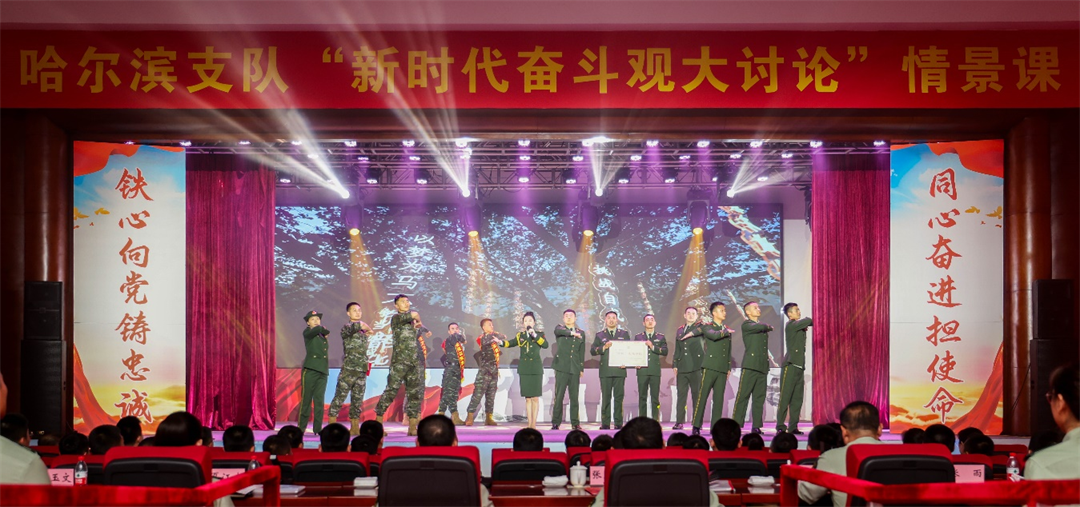 6月21日,武警黑龍江總隊(duì)哈爾濱支隊(duì)創(chuàng)作推出的“新時代奮斗觀”大討論情景課《綻放的“冰凌花”》精彩上演。