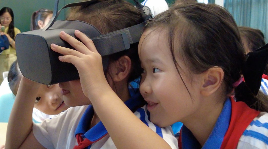 圖為同學(xué)們體驗(yàn)禁毒VR體驗(yàn)設(shè)備。