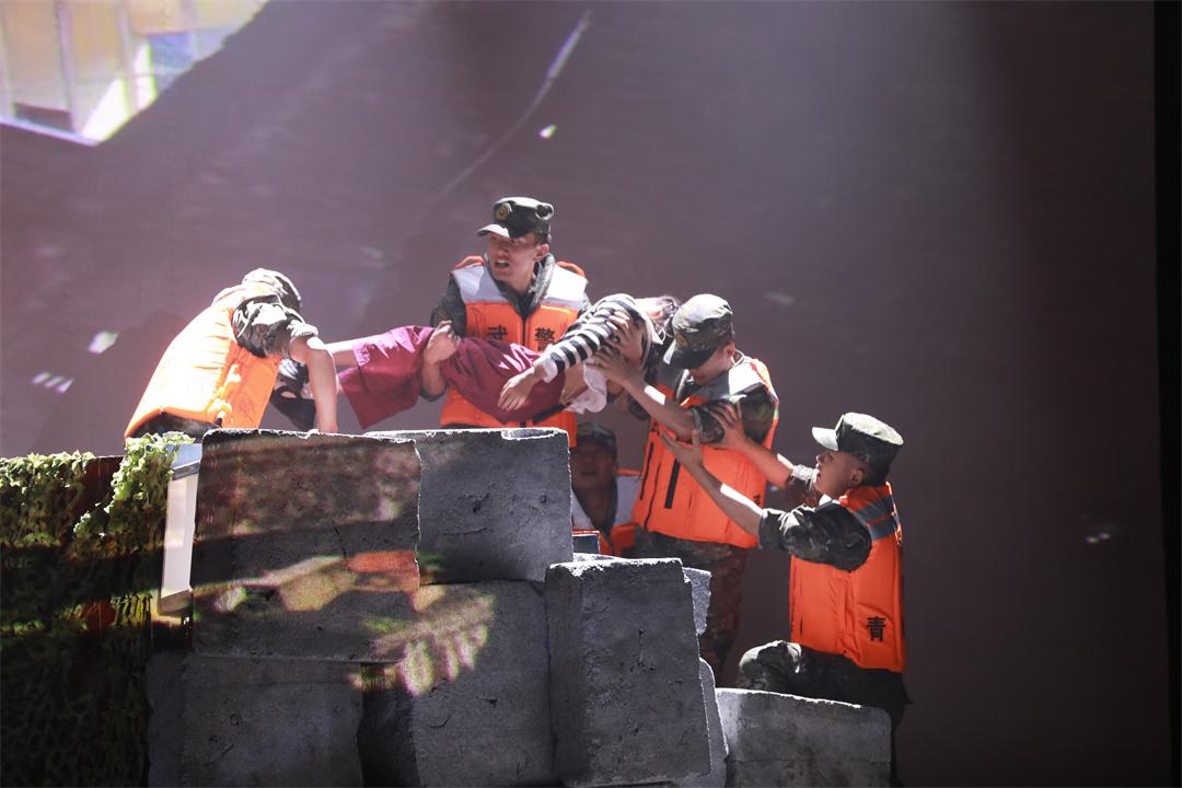 情景劇由武警青??傟?duì)官兵自創(chuàng)自排,分為“忠誠——赤膽無畏”“使命——擔(dān)當(dāng)奉獻(xiàn)”“奮斗——凝聚前行”三個篇章,融合對白、演唱、舞蹈等多種方式,以總隊(duì)歷年來涌現(xiàn)出的張海西、段磊、張新磊、楊富祥、王賞、趙江維等先進(jìn)典型為突出代表,以官兵們執(zhí)勤處突、搶險(xiǎn)救援、精準(zhǔn)扶貧等重大任務(wù)為原型,將“兩彈一星”精神、“西路軍”精神、“老高原”精神融入其中,感人肺腑、催人淚下。