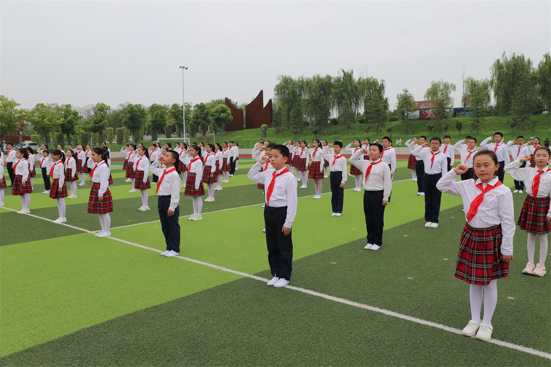 隨后,2023年度“紅領(lǐng)巾獎?wù)隆比珖逍钦芦@得者、五(8)中隊(duì)長楊天聰帶領(lǐng)全體隊(duì)員在國旗下立下誓言,要堅(jiān)定不移聽黨話、跟黨走,用實(shí)際行動踐行愛國之志。