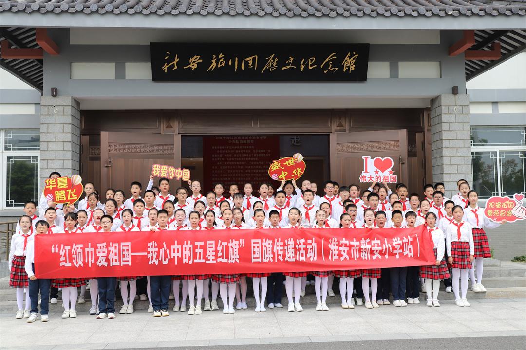 8月21日上午,“紅領(lǐng)巾愛祖國——我心中的五星紅旗”國旗傳遞活動來到江蘇省淮安市,在淮安市新安小學(xué)傳遞。少先隊(duì)校外輔導(dǎo)員、消防員代表陳新寬,淮安市、區(qū)少先隊(duì)總輔導(dǎo)員,新安小學(xué)少先隊(duì)大隊(duì)及中隊(duì)輔導(dǎo)員代表,以及新老五(8)中隊(duì)全體隊(duì)員逾百人共同參與了本次傳遞活動。