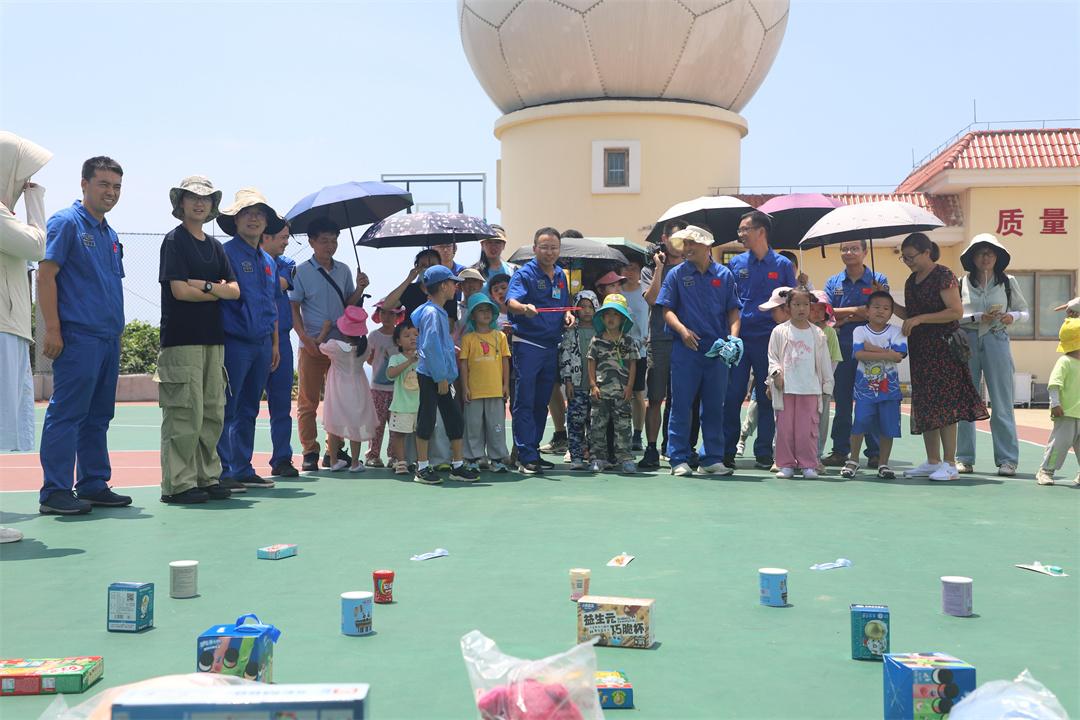 “加油!加油!加油!”在文昌銅鼓嶺測控點,趣味套圈游戲?qū)⒂H子活動引向高潮。瞄準(zhǔn)、蓄力、拋出……在與爸爸媽媽的協(xié)作和挑戰(zhàn)中,一個個航天娃沉浸在歡樂的海洋里。隨著拋出的圓圈套中心儀獎品,小朋友們喜笑顏開,帶著戰(zhàn)利品凱旋。