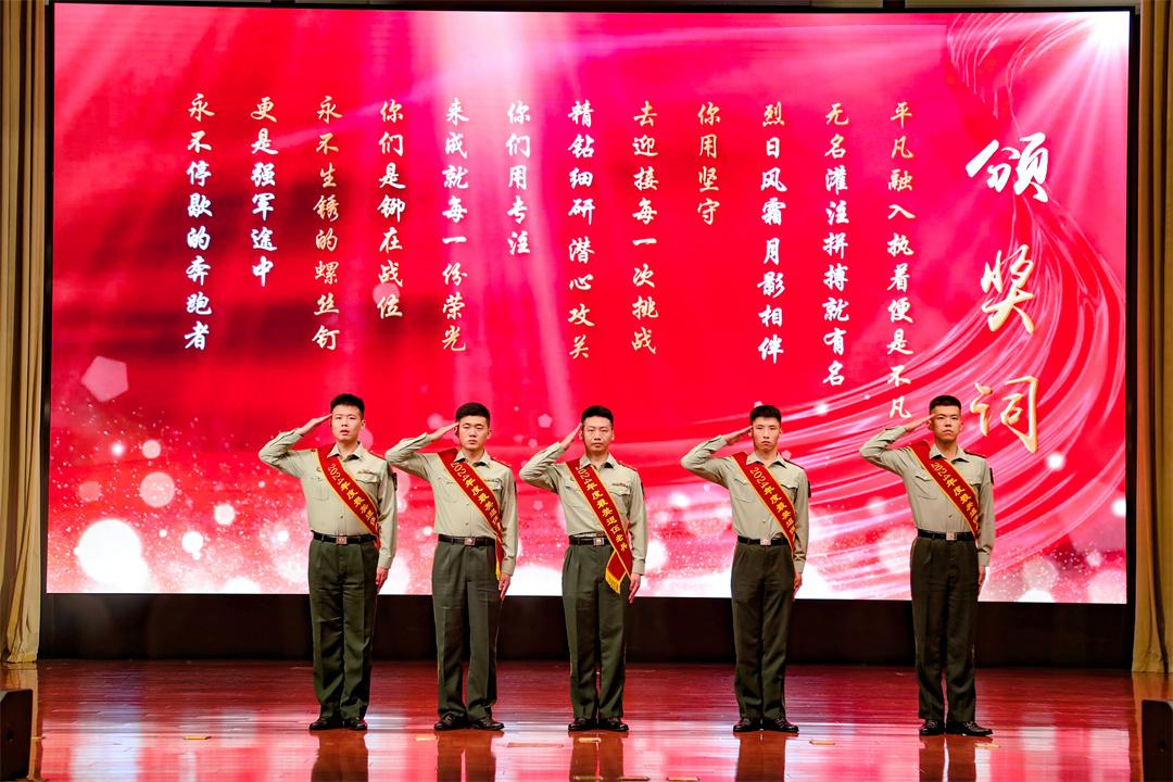頒獎(jiǎng)典禮分為流血流汗的“刀尖子”、默默無(wú)聞的“老耕?!薄⑸砑鏀?shù)職的“戰(zhàn)斗員”、小崗位上的“螺絲釘”、以心換心的“親兄弟”、忠孝兩全的“男子漢”六個(gè)篇章,通過(guò)官兵講述和文藝匯演穿插的方式進(jìn)行。既有不怕流汗、不怕流血的軍事尖子、特戰(zhàn)骨干,又有為人老實(shí)、工作踏實(shí)的老黃牛;有衛(wèi)生員、炊事員、文書等既是戰(zhàn)斗員又是服務(wù)員的生動(dòng)事跡,又有副班長(zhǎng)、團(tuán)支部副書記、風(fēng)氣監(jiān)督員等小崗位上踐行“崗位雖小擔(dān)千鈞”的優(yōu)秀老兵;既有帶兵帶心、帶兵育人的軍中之母,又有在部隊(duì)盡忠、對(duì)家庭盡孝的優(yōu)秀老兵。