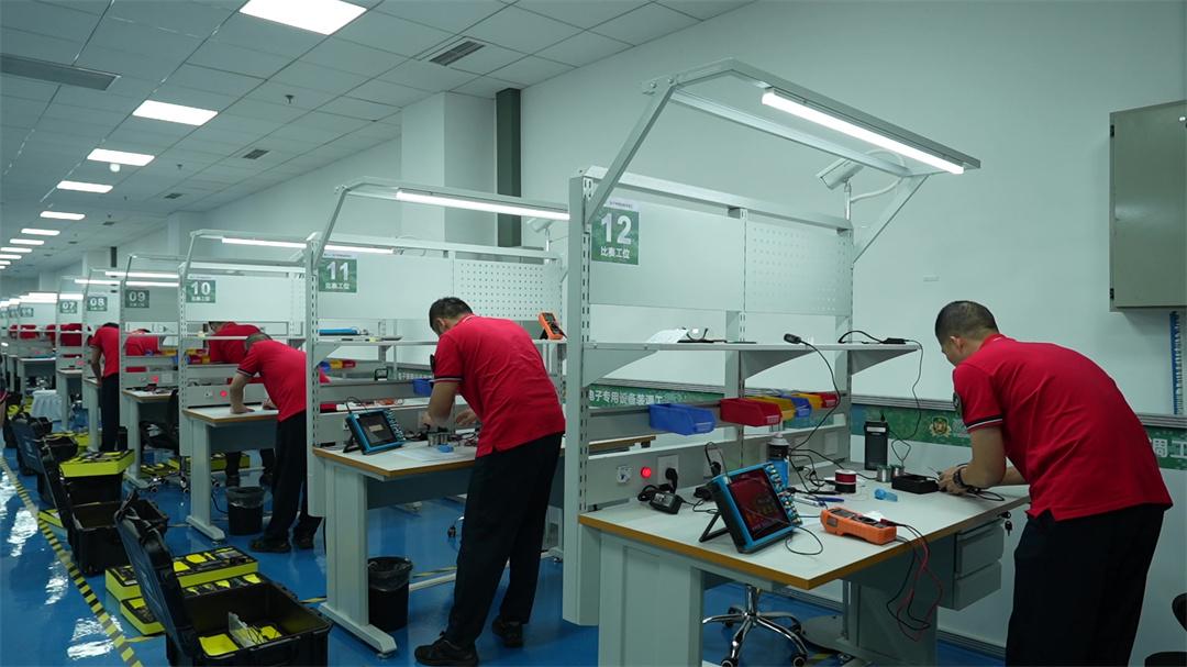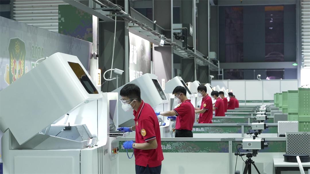 圖為電子專用設(shè)備裝調(diào)工比賽進(jìn)行中。