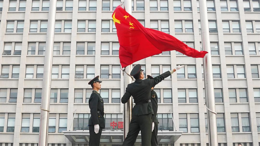 在雄壯激昂的《義勇軍進(jìn)行曲》中,五星紅旗冉冉升起,全體人員面向國(guó)旗莊嚴(yán)肅立,齊唱中華人民共和國(guó)國(guó)歌,在歌聲中對(duì)祖國(guó)深情告白,獻(xiàn)上對(duì)祖國(guó)最真摯的祝福。