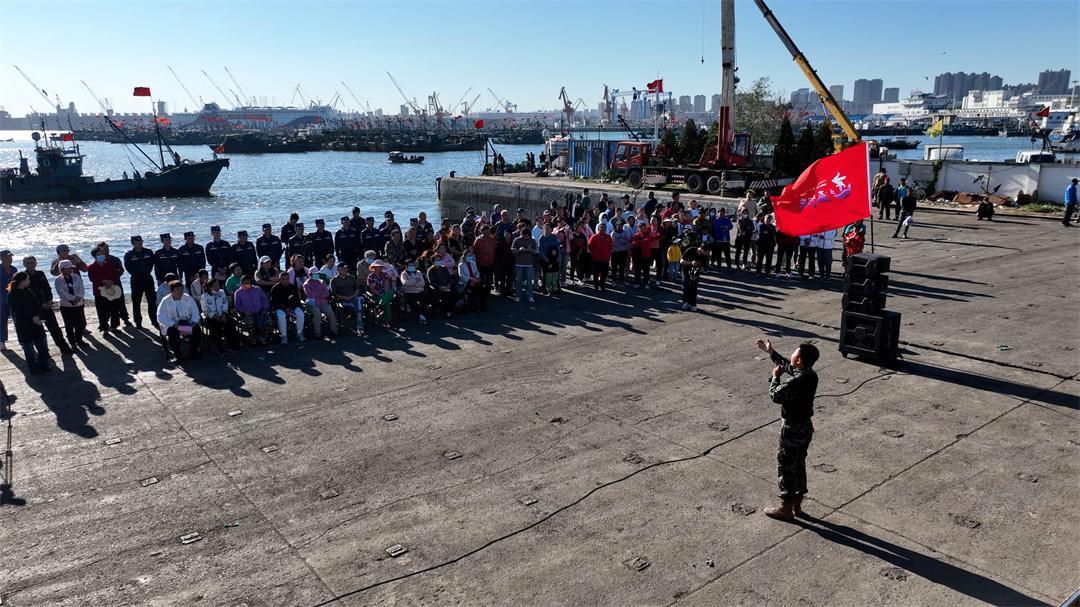在大連遼漁碼頭演出時,當(dāng)天海風(fēng)凜冽,氣溫驟降,但絲毫沒有減弱漁民朋友的熱情與期待。由于觀眾較多,座位遠遠不夠,許多漁民朋友索性站著,甚至攀上漁船、車頂。這時,隊員陸敏志腰傷突發(fā)鉆心地疼。大連海警局宣傳干事建議他休息,陸智卻說,如果今天不能展示最好的表演狀態(tài),那就對不起臺下駐地執(zhí)法員和漁民朋友的熱情與期待。就這樣,他和隊員們與觀眾進行了一場溫暖的雙向奔赴。