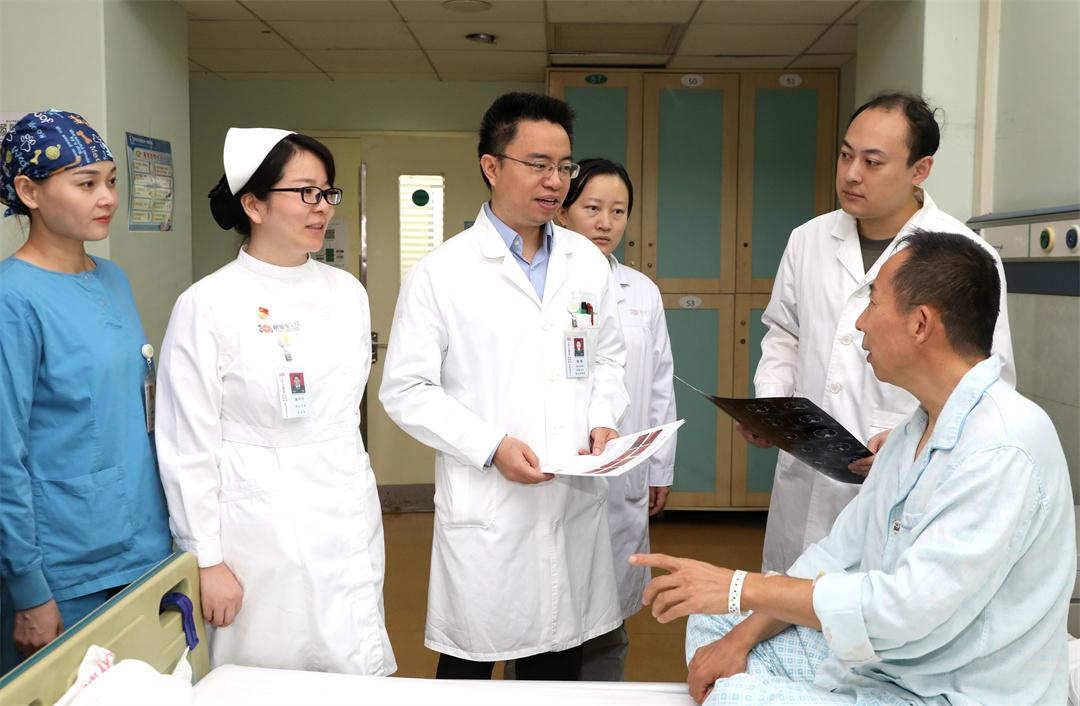 圖為解放軍總醫(yī)院第四醫(yī)學(xué)中心消化內(nèi)科陳超主任帶領(lǐng)醫(yī)護(hù)人員查看運(yùn)用“超級微創(chuàng)手術(shù)”切除胃部腫物的患者,手術(shù)后該患者恢復(fù)良好,不久就可以出院。鞠文富 攝