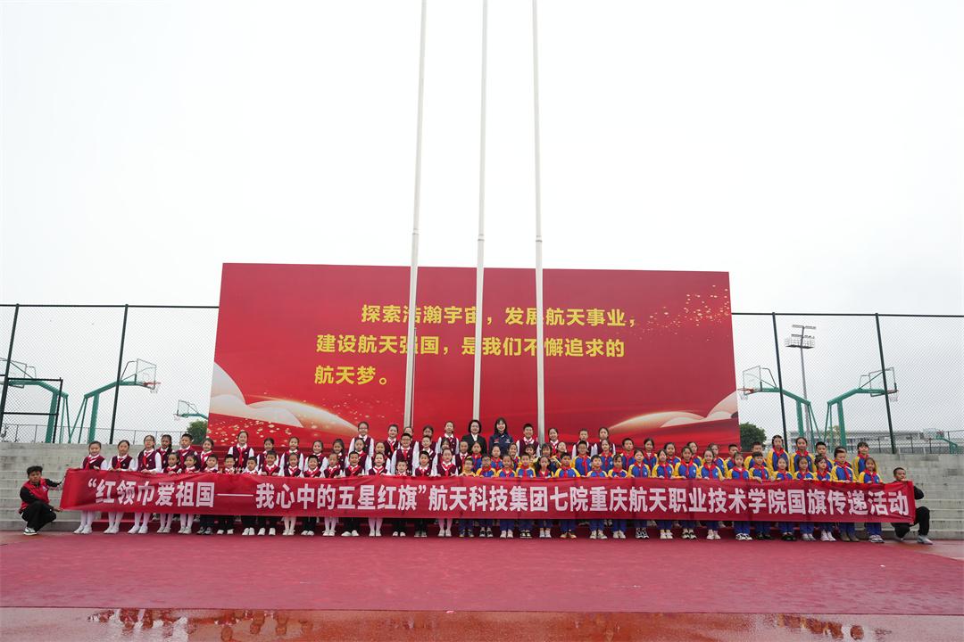 11月9日,“紅領(lǐng)巾愛祖國——我心中的五星紅旗”國旗傳遞活動(dòng)在中國航天科技集團(tuán)七院重慶航天職業(yè)技術(shù)學(xué)院舉行。共青團(tuán)重慶市委員會(huì)、共青團(tuán)渝北區(qū)委員會(huì)、航天科技集團(tuán)七院等相關(guān)同志以及航天青年代表、重慶市渝北區(qū)和合家園小學(xué)及天堡寨小學(xué)少先隊(duì)員、重慶航天職業(yè)技術(shù)學(xué)院師生代表等參加了活動(dòng),共同見證這面遨游太空、滿載祖國榮譽(yù)的五星紅旗在巴渝大地高高飄揚(yáng)。