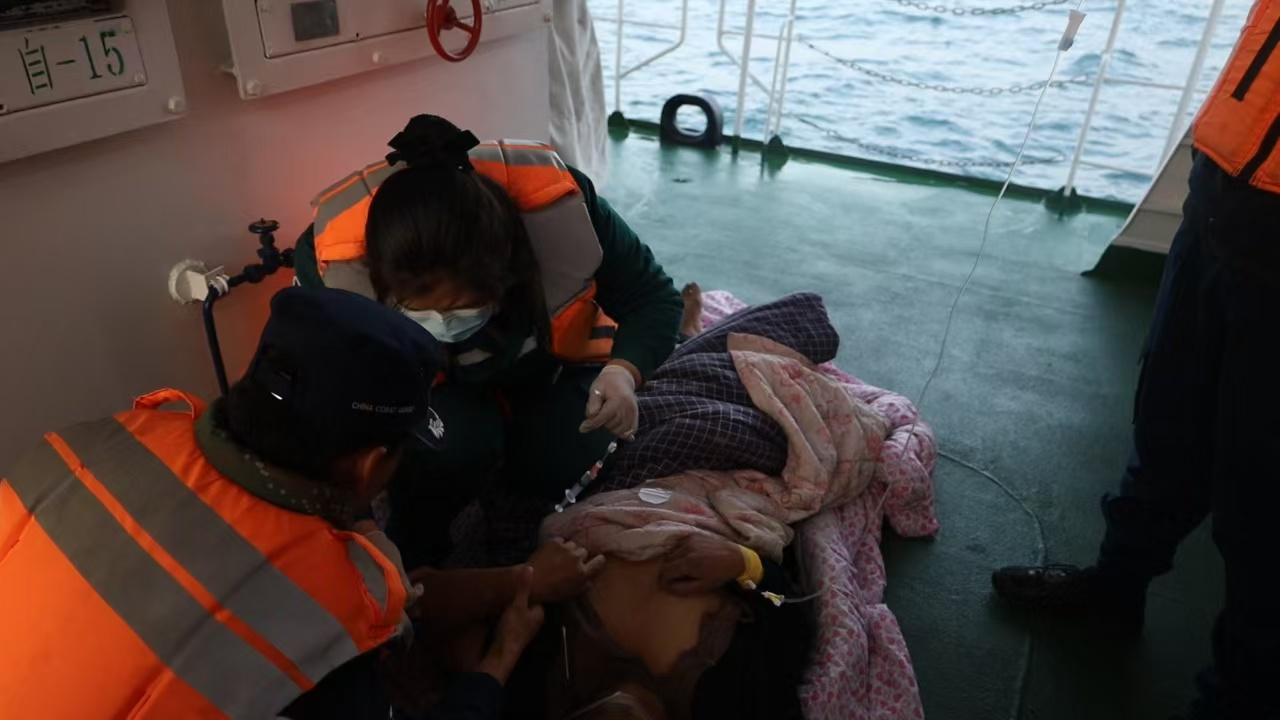 面對緊急情況,海警執(zhí)法員迅速行動,將漁艙內(nèi)船員轉(zhuǎn)移至漁船甲板上,并與醫(yī)務(wù)人員一同展開搶救。6名中毒船員和2名因救援吸入少許毒氣的船員順利過駁至白石艇,隨后白石艇向榮成第二工作站碼頭返航。