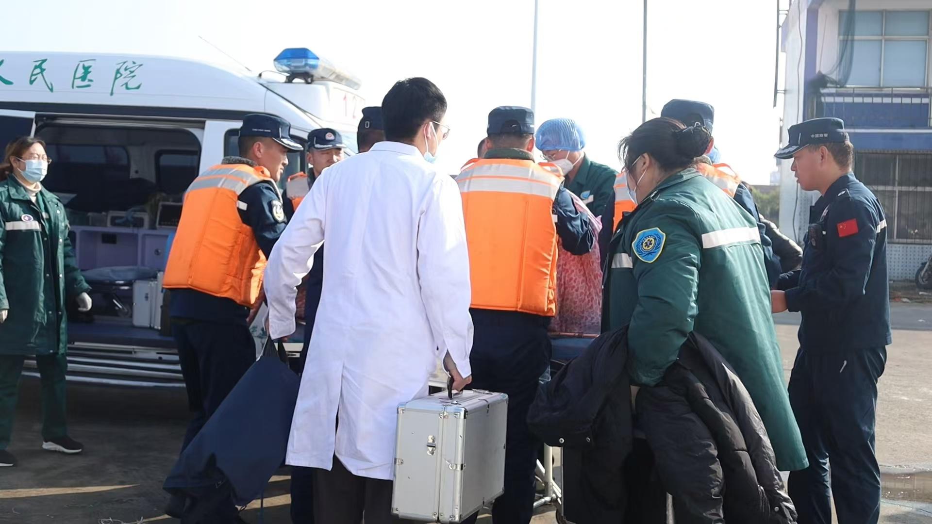 9時45分,白石艇靠泊榮成第二工作站碼頭。早已在此等候的當?shù)?20救護車將8名船員轉(zhuǎn)運至當?shù)蒯t(yī)院。經(jīng)過醫(yī)院全力救治,6人身體狀況穩(wěn)定,1人不幸失去生命體征,另1人仍在搶救中。