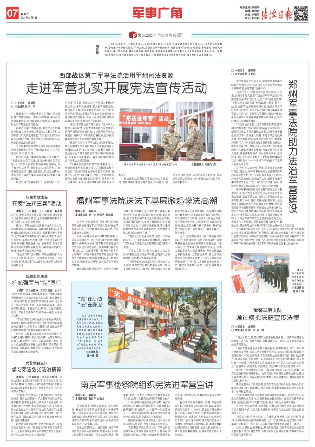 12月初,解放軍西安軍事法院、陜西省銅川市中級(jí)人民法院緊貼部隊(duì)需求,赴武警駐陜某部聯(lián)合開展“法潤(rùn)三秦”憲法宣傳活動(dòng)。