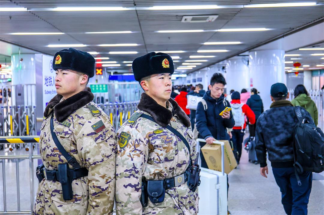 2月3日至6日,北京迎來返程客流高峰。為確保旅客安全順利抵京,擔(dān)負(fù)北京西站執(zhí)勤任務(wù)的武警北京總隊(duì)執(zhí)勤第六支隊(duì)官兵堅(jiān)守崗位,守護(hù)旅客出行平安。