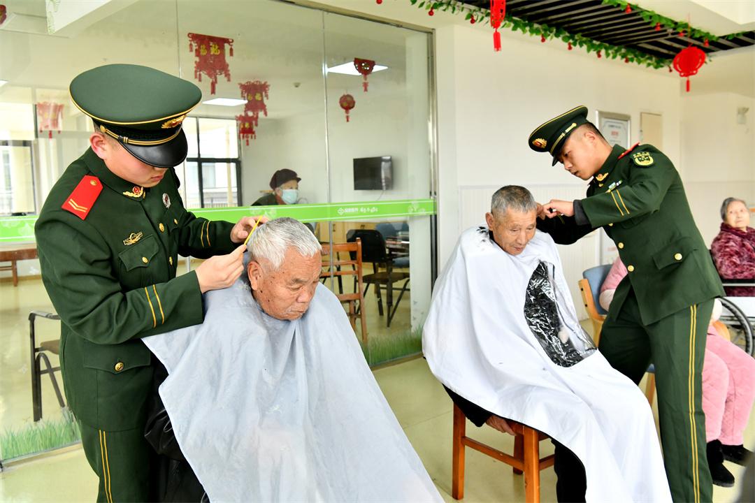 圖為官兵為駐地福利院老人理發(fā)。