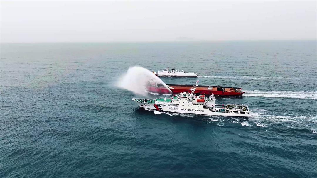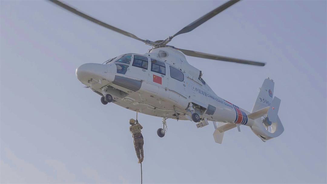 最刺激的當(dāng)數(shù)“甲板突襲”現(xiàn)場(chǎng):執(zhí)法員從直升機(jī)索降而下,快艇同時(shí)抵近包抄,水炮精準(zhǔn)壓制目標(biāo)船舵機(jī),整套動(dòng)作行云流水。