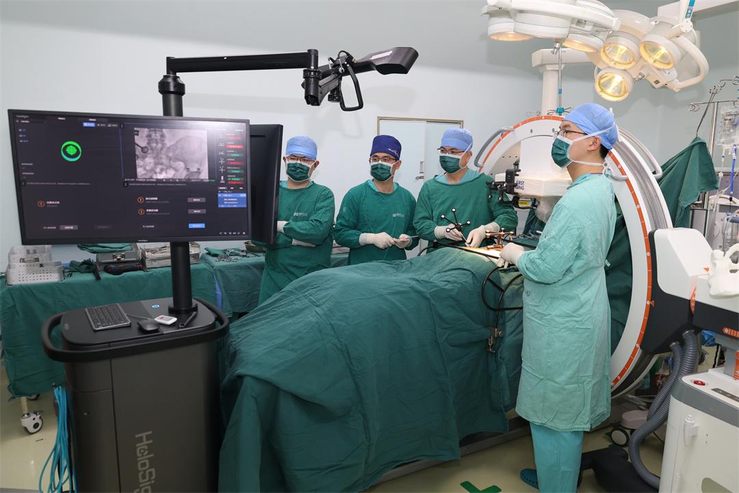 如果采取傳統(tǒng)開放手術治療,要在布滿重要血管神經的腹股溝區(qū)開20厘米刀口,手術時間至少也要8小時,出血量預估3000毫升?;颊呤苤貏?chuàng)并手術后極度虛弱的身體難以承受,只能選擇保守治療。面對棘手病例,陳華團隊借助先進技術成果,運用骨盆解鎖復位系統(tǒng)和骨科手術導航系統(tǒng),在僅打幾個孔的情況下可實現微創(chuàng)閉合手術。
