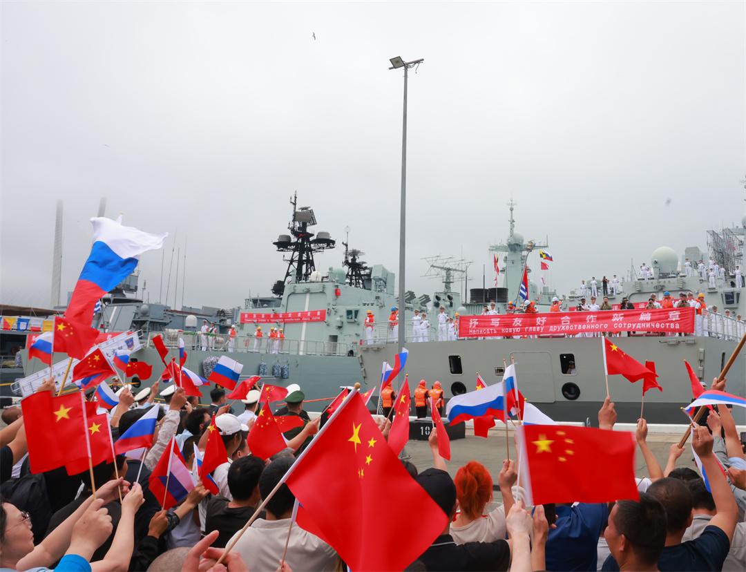 圖為抵達(dá)符拉迪沃斯托克后,中國艦艇編隊受到熱烈歡迎。黨文彬 攝