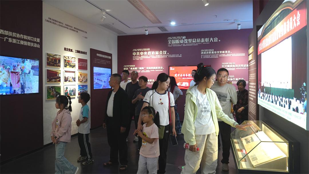在“博物館奇妙游”環(huán)節(jié),航天家屬系統(tǒng)了解了脫貧攻堅戰(zhàn)略從頂層設(shè)計到基層實踐的全過程。展館內(nèi),翔實的文字數(shù)據(jù)、震撼的紀實影像、珍貴的實物展品生動再現(xiàn)了涼山州上下勠力同心、攻堅克難的偉大歷程。