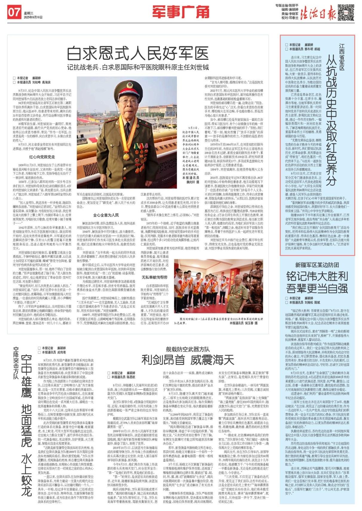 9月3日當(dāng)天,江西省吉安軍分區(qū)專門邀請(qǐng)參戰(zhàn)老兵、立功受獎(jiǎng)退役軍人代表走進(jìn)駐地中小學(xué)校,與廣大師生共同觀看抗戰(zhàn)勝利80周年紀(jì)念活動(dòng)直播,感悟人民軍隊(duì)由弱到強(qiáng)的光輝歷程,在孩子們心中種下愛黨愛國愛軍的種子。